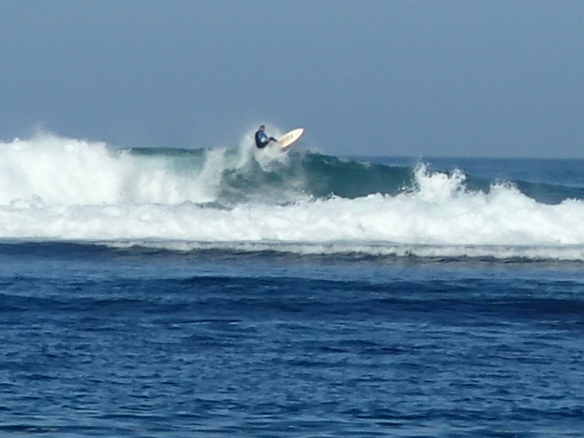 Quelques kilomètres plus loin, entre Gétaria et Zumaia, on a vu sur une super petite gauche qui cassait sur les rochers mais qui avait l’air praticable. Sitôt garés juste en face du spot, on a rejoint trois locaux à l’eau. Puis « déjeuner » au bord de la plage de Deba (Steeve cuisine super bien les pâtes !) et visite des ports typiques de Mutriku et Lekeitio. En fin d’aprem, encore un joli surf plage de Laga, un endroit magnifique juste à côté du village d’Elantxobe, construit à flanc de falaise. Un endroit absolument magnifique pour notre surf trip in « basque country »!